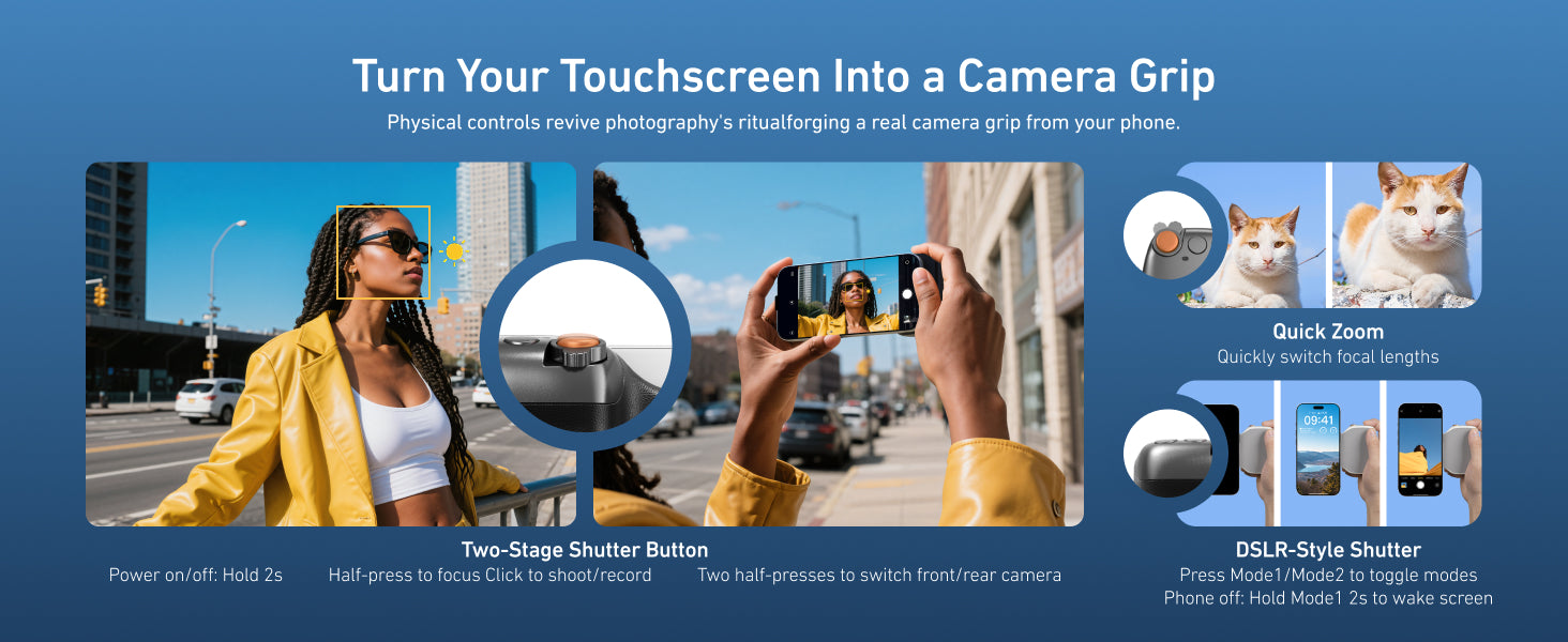 Instantly transform your smartphone into a professional camera with this comfortable camera grip. Designed for a natural hand position, it reduces shake and provides DSLR-like stability, even when capturing quick moments or sunset selfies.