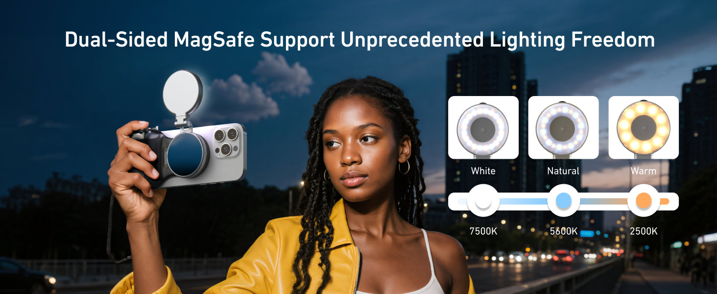 Seamlessly compatible with MagSafe cases and magnetic accessories. Quickly switch from handheld shooting to tripod setup using a universal 1/4-inch screw.